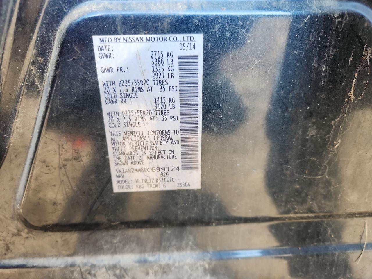 2014 NISSAN PATHFINDER - 5N1AR2MM8EC699124, колір - Синій, 3.5, Бензин, 4x4 з переднім приводом із США