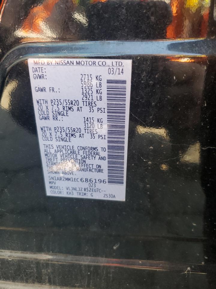 2014 NISSAN PATHFINDER - 5N1AR2MM1EC686196, колір - Чорний, 3.5, Бензин, 4x4 з переднім приводом із США