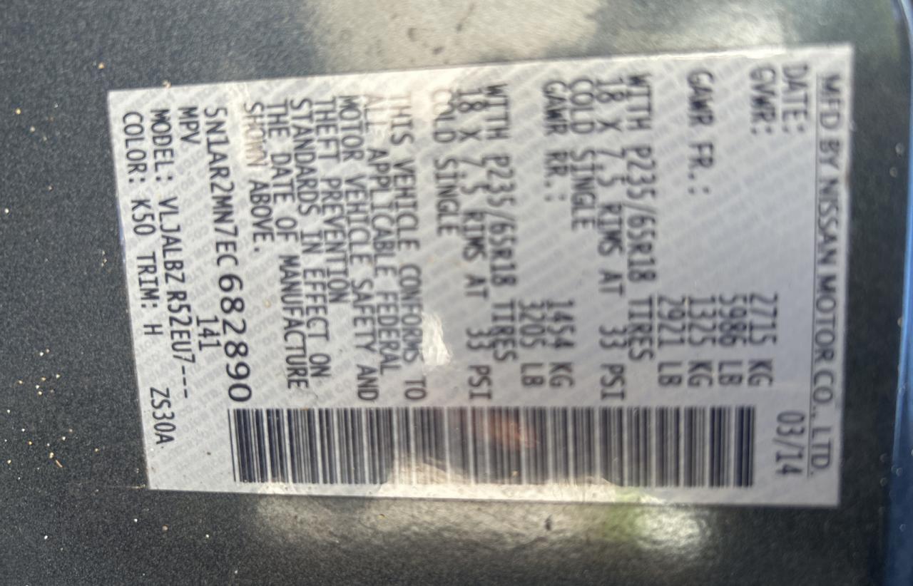 2014 NISSAN PATHFINDER - 5N1AR2MN7EC682890, колір - Сірий, 3.5, Бензин, із США
