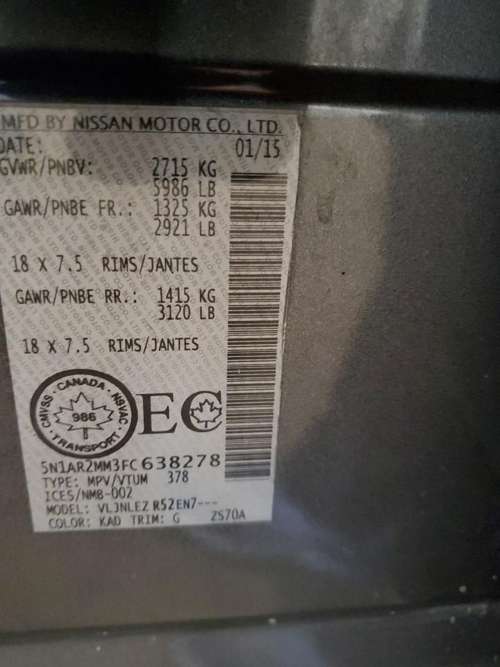2015 NISSAN PATHFINDER - 5N1AR2MM3FC638278, колір - Сірий, 3.5, Бензин, 4x4 з переднім приводом із США