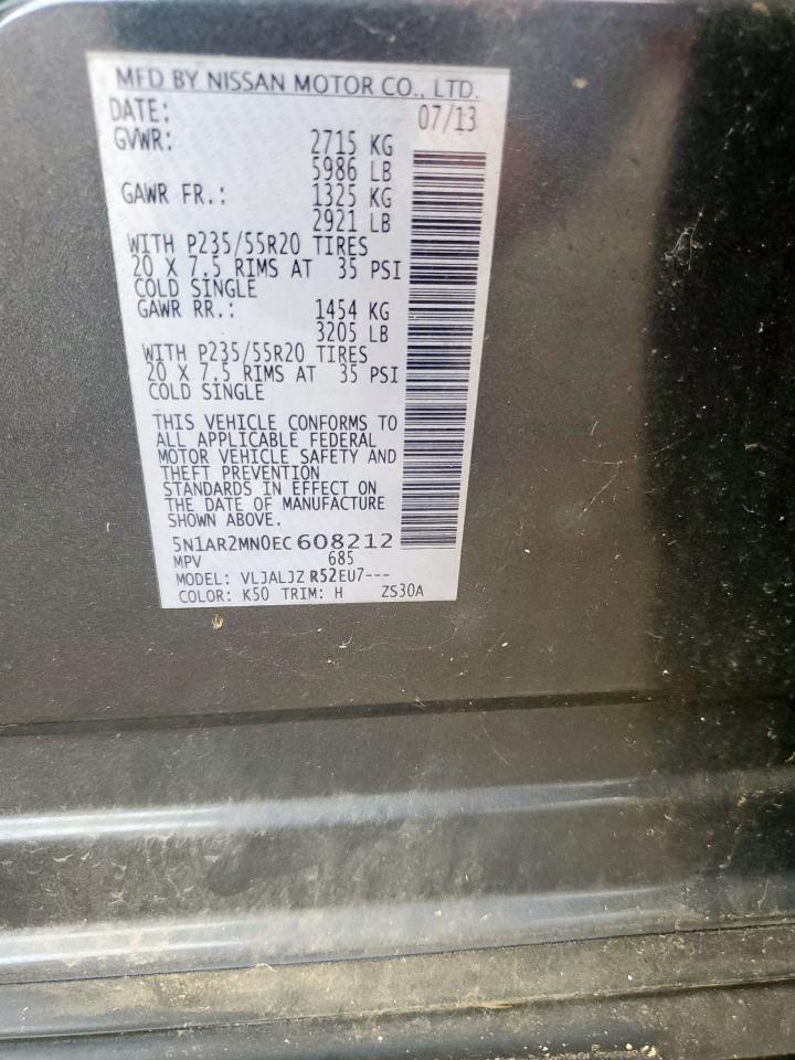 2014 NISSAN PATHFINDER - 5N1AR2MN0EC608212, колір - Деревне вугілля, 3.5, Бензин, із США