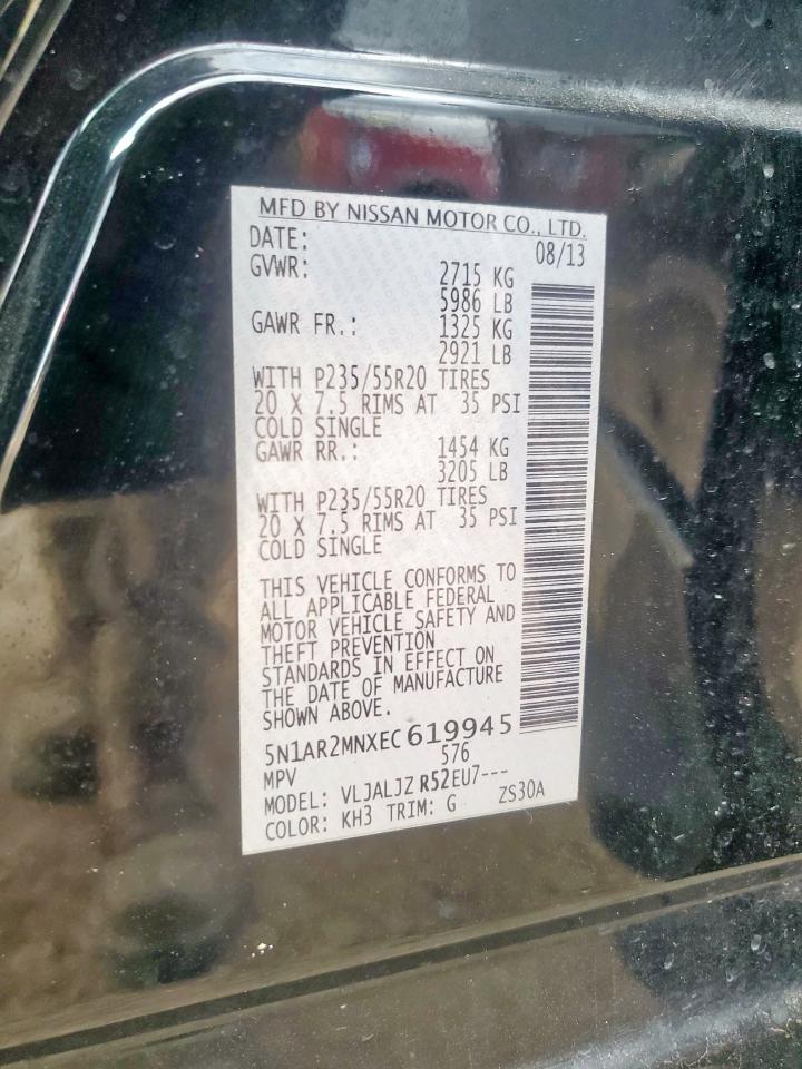 2014 NISSAN PATHFINDER - 5N1AR2MNXEC619945, колір - Чорний, 3.5, Бензин, із США