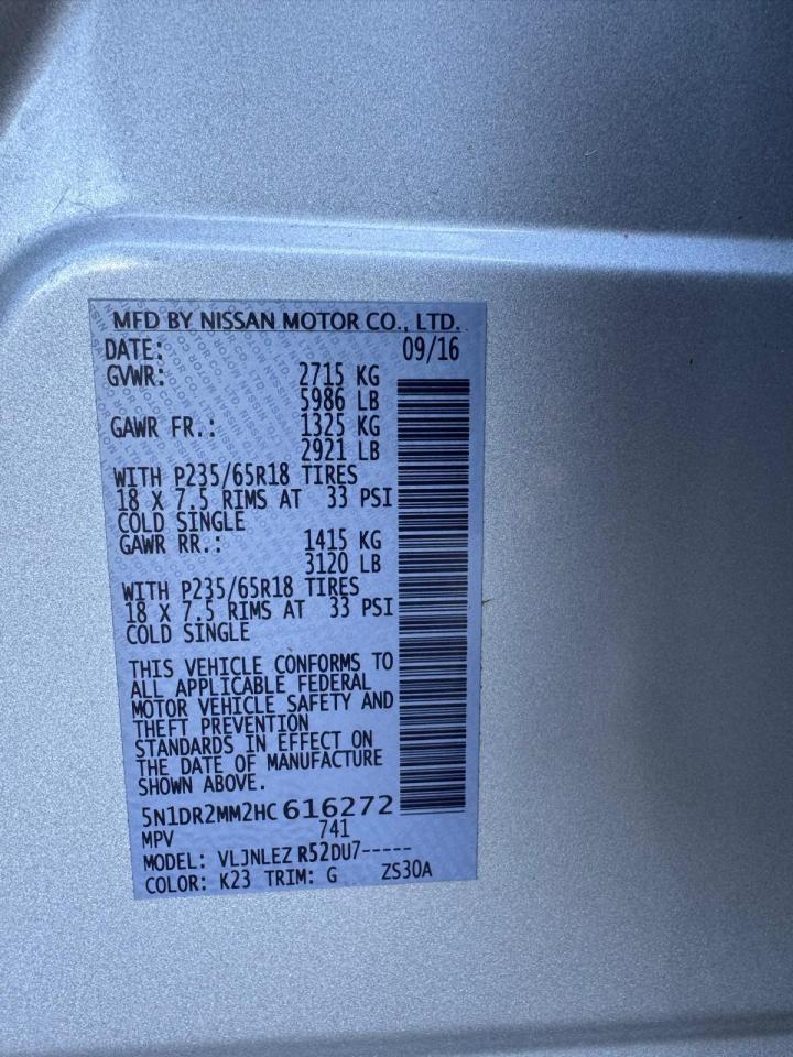 2017 NISSAN PATHFINDER - 5N1DR2MM2HC616272, колір - Срібний, 3.5, Бензин, 4x4 з переднім приводом із США