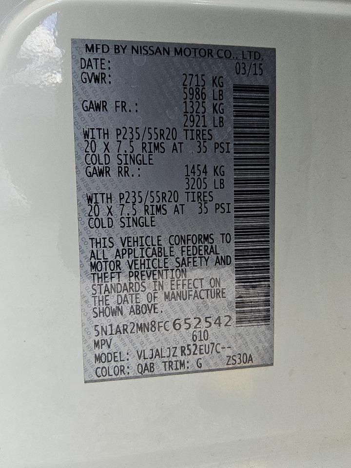 2015 NISSAN PATHFINDER - 5N1AR2MN8FC652542, колір - Білий, 3.5, Бензин, із США