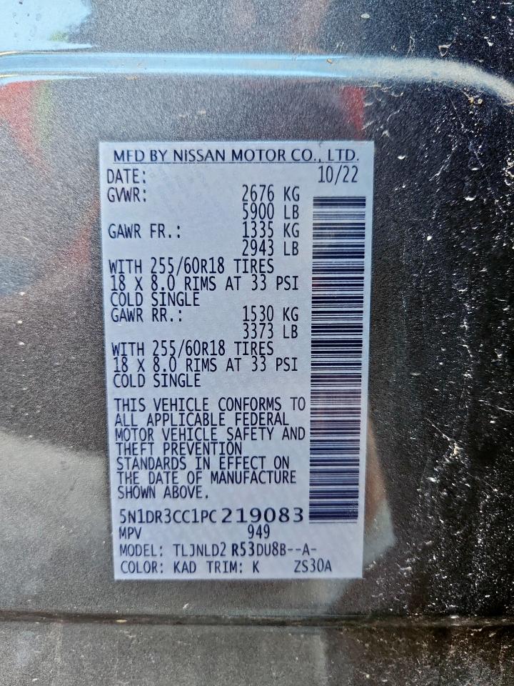 2023 NISSAN PATHFINDER - 5N1DR3CC1PC219083, колір - Сірий, 3.5, Бензин, 4x4 з переднім приводом із США