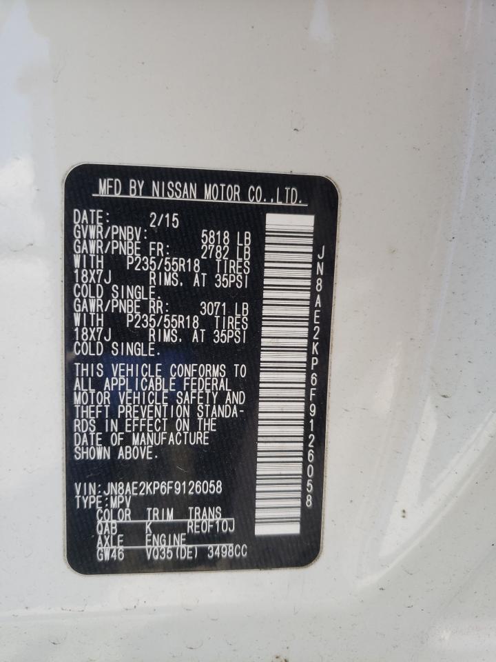 2015 NISSAN QUEST - JN8AE2KP6F9126058, колір - Білий, 3.5, Бензин, із США