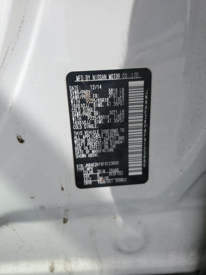2015 NISSAN QUEST - JN8AE2KP8F9123680, колір - Білий, 3.5, Бензин, із США