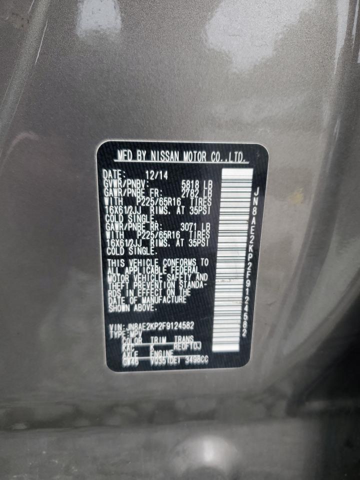2015 NISSAN QUEST - JN8AE2KP2F9124582, колір - Сірий, 3.5, Бензин, із США