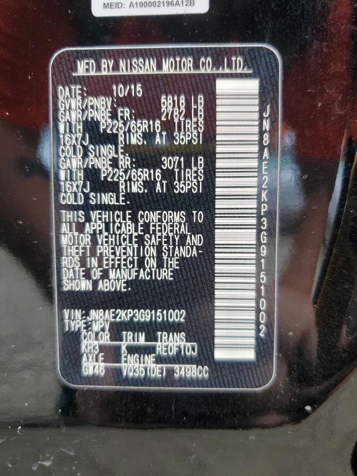 2016 NISSAN QUEST - JN8AE2KP3G9151002, колір - Чорний, 3.5, Бензин, із США