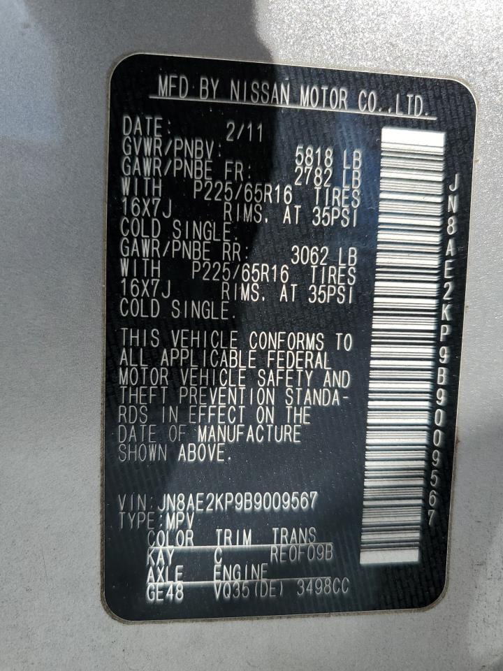 2011 NISSAN QUEST - JN8AE2KP9B9009567, колір - Бежевий, 3.5, Бензин, із США