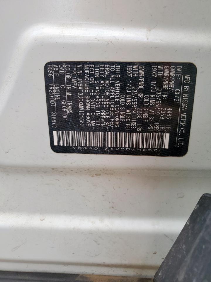 2021 NISSAN ROGUE - JN8AT3DCXMW104682, колір - Білий, 2.5, Бензин, із США