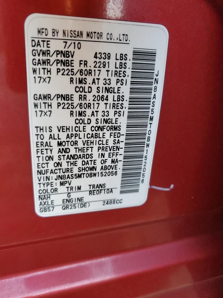 2011 NISSAN ROGUE - JN8AS5MT0BW152056, колір - Червоний, 2.5, Бензин, із США
