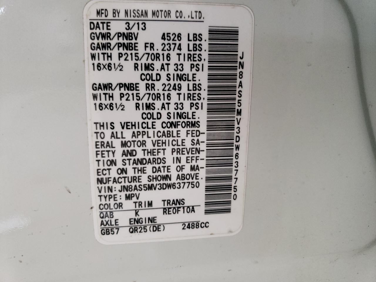 2013 NISSAN ROGUE - JN8AS5MV3DW637750, колір - Білий, 2.5, Бензин, Повний привід із США