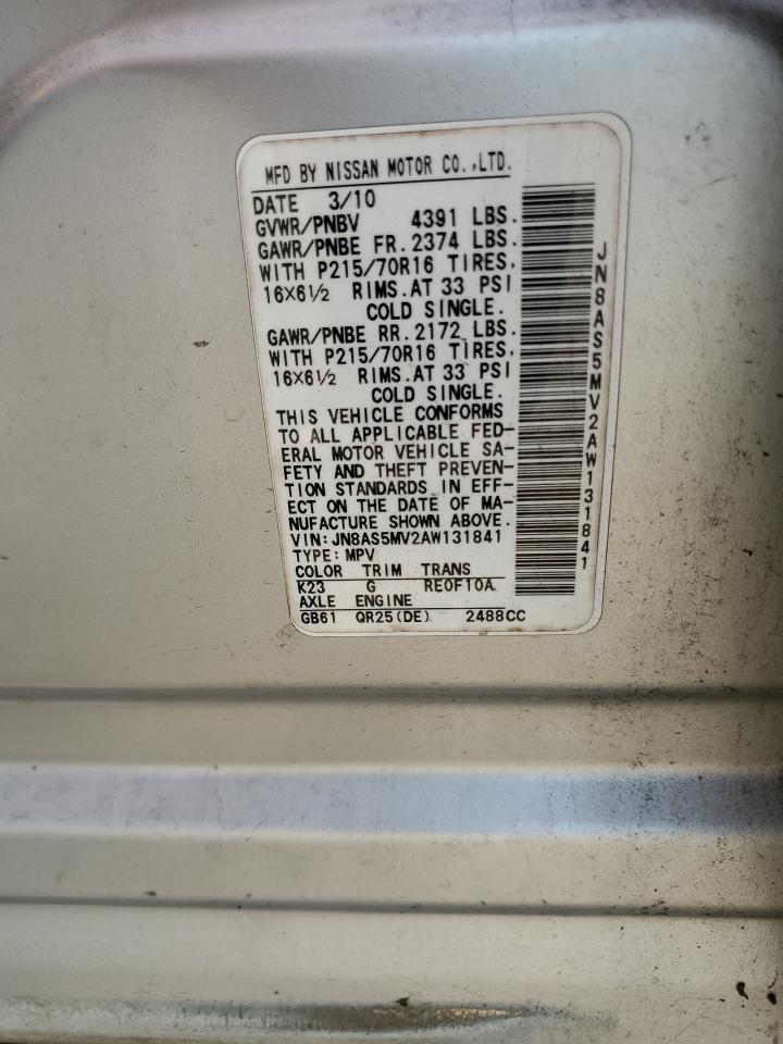 2010 NISSAN ROGUE - JN8AS5MV2AW131841, колір - Срібний, 2.5, Бензин, Повний привід із США