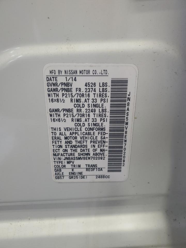 2014 NISSAN ROGUE - JN8AS5MV8EW702092, колір - Білий, 2.5, Бензин, Повний привід із США