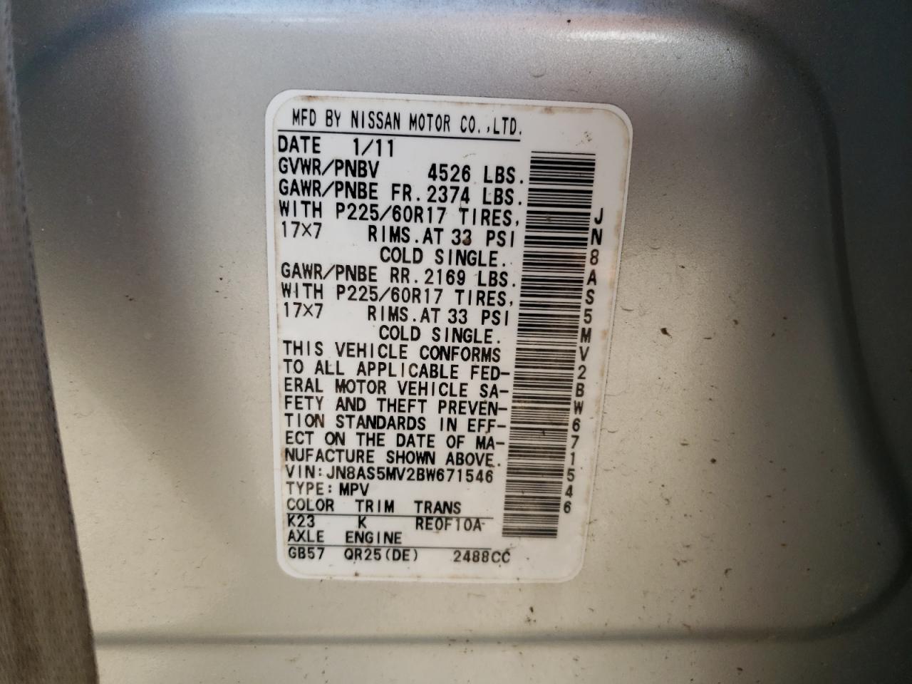 2011 NISSAN ROGUE - JN8AS5MV2BW671546, колір - Срібний, 2.5, Бензин, Повний привід із США