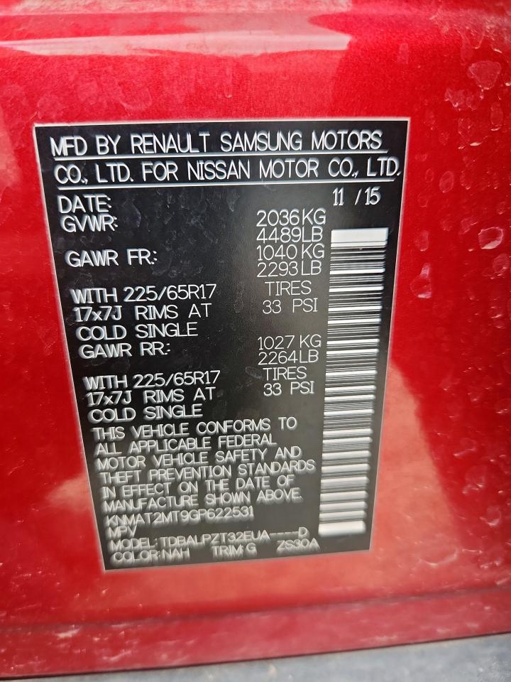 2016 NISSAN ROGUE - KNMAT2MT9GP622531, колір - Бордовий, 2.5, Бензин, із США