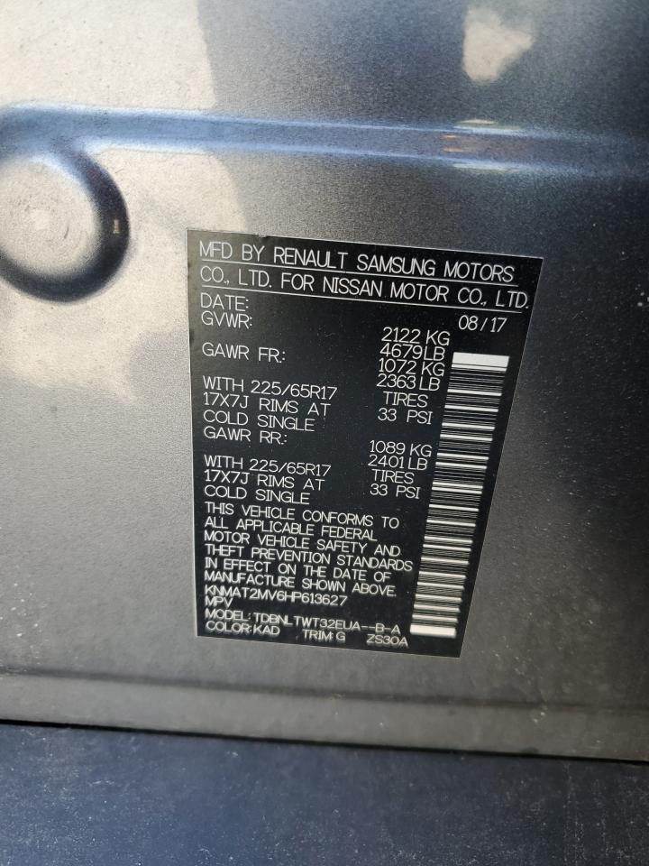 2017 NISSAN ROGUE - KNMAT2MV6HP613627, колір - Сірий, 2.5, Бензин, Повний привід із США