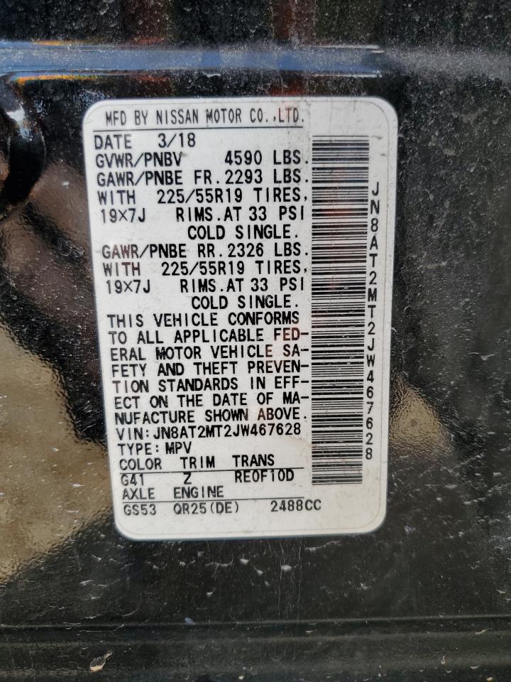 2018 NISSAN ROGUE - JN8AT2MT2JW467628, колір - Чорний, 2.5, Бензин, із США