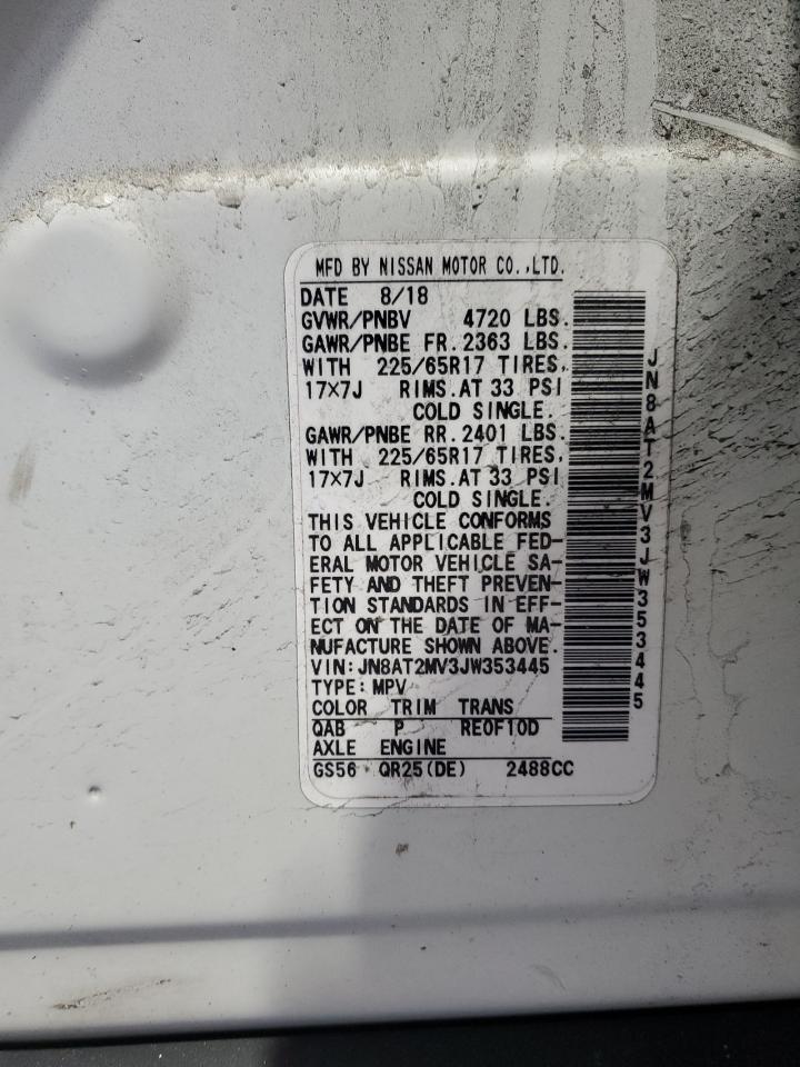 2018 NISSAN ROGUE - JN8AT2MV3JW353445, колір - Білий, 2.5, Бензин, Повний привід із США