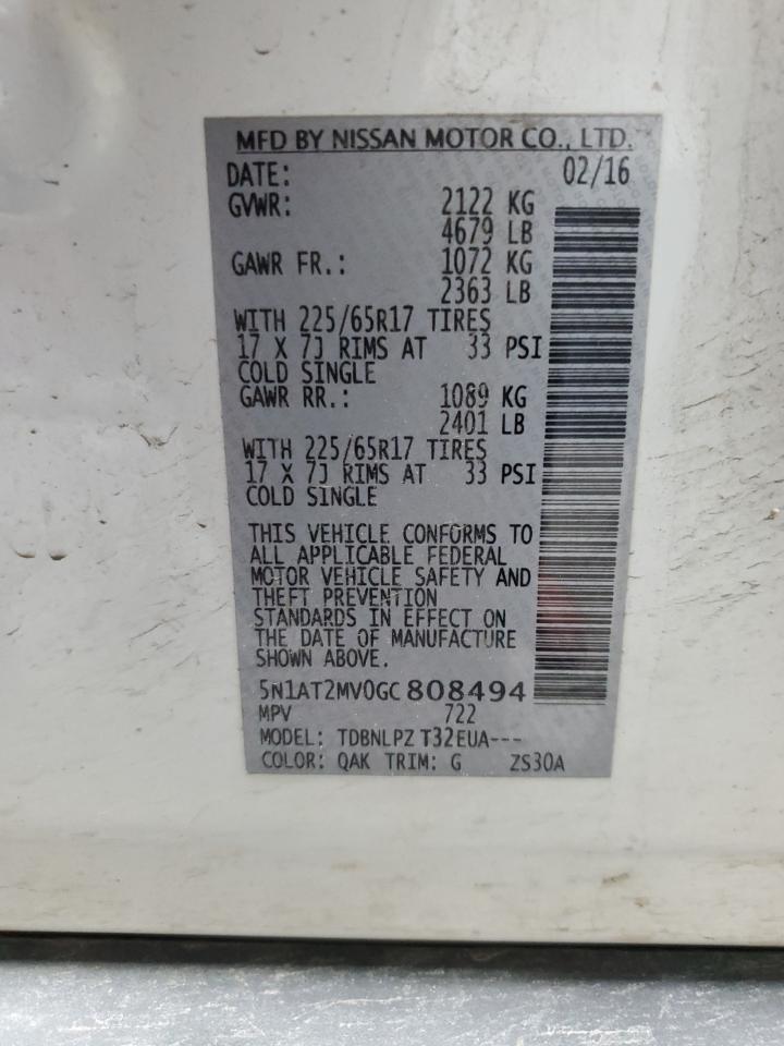 2016 NISSAN ROGUE - 5N1AT2MV0GC808494, колір - Білий, 2.5, Бензин, Повний привід із США