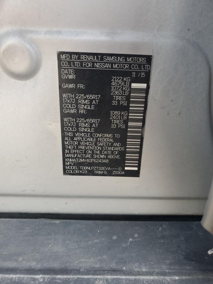 2016 NISSAN ROGUE - KNMAT2MV4GP624348, колір - Срібний, 2.5, Бензин, Повний привід із США