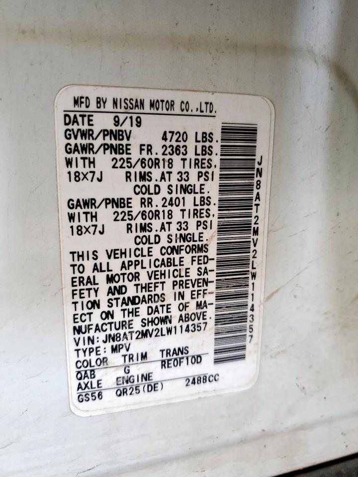 2020 NISSAN ROGUE - JN8AT2MV2LW114357, колір - Білий, 2.5, Бензин, Повний привід із США