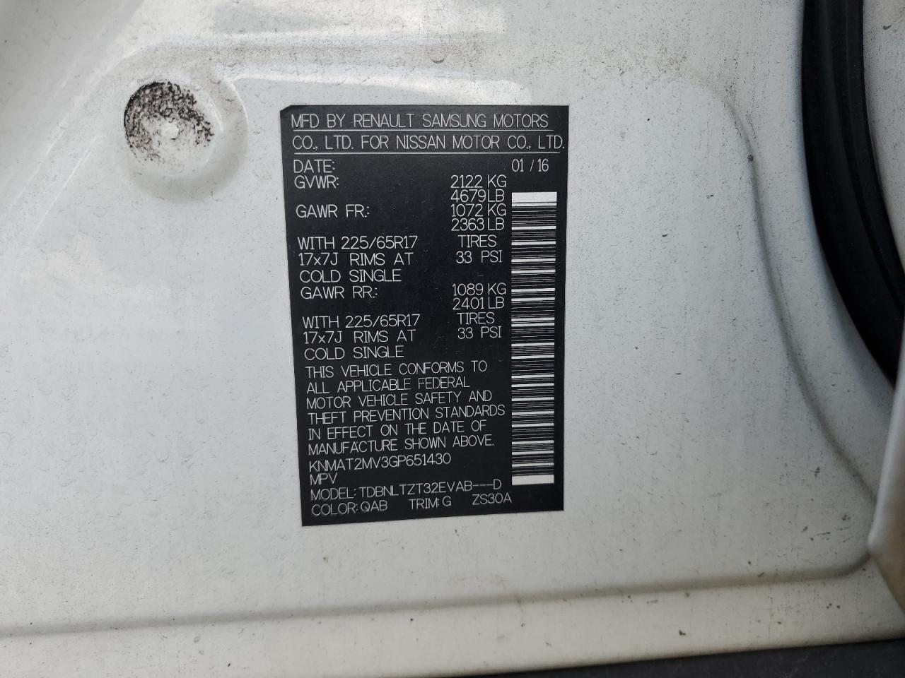 2016 NISSAN ROGUE - KNMAT2MV3GP651430, колір - Білий, 2.5, Бензин, Повний привід із США