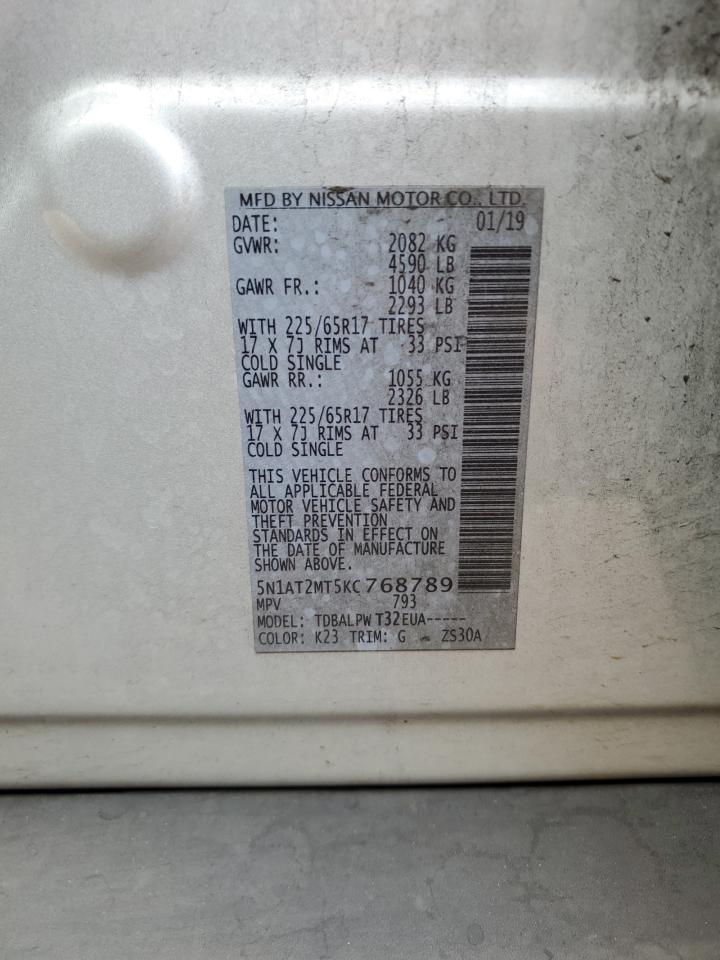 2019 NISSAN ROGUE - 5N1AT2MT5KC768789, колір - Срібний, 2.5, Бензин, із США