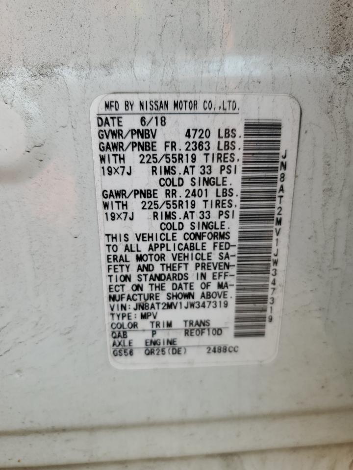 2018 NISSAN ROGUE - JN8AT2MV1JW347319, колір - Білий, 2.5, Бензин, Повний привід із США