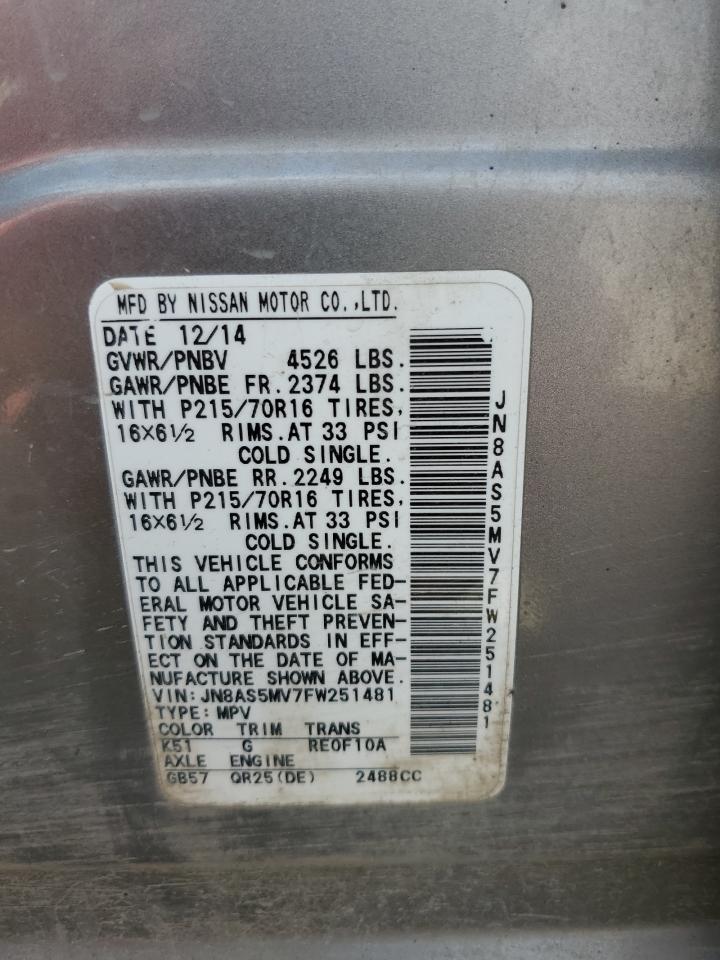 2015 NISSAN ROGUE - JN8AS5MV7FW251481, колір - Сірий, 2.5, Бензин, Повний привід із США