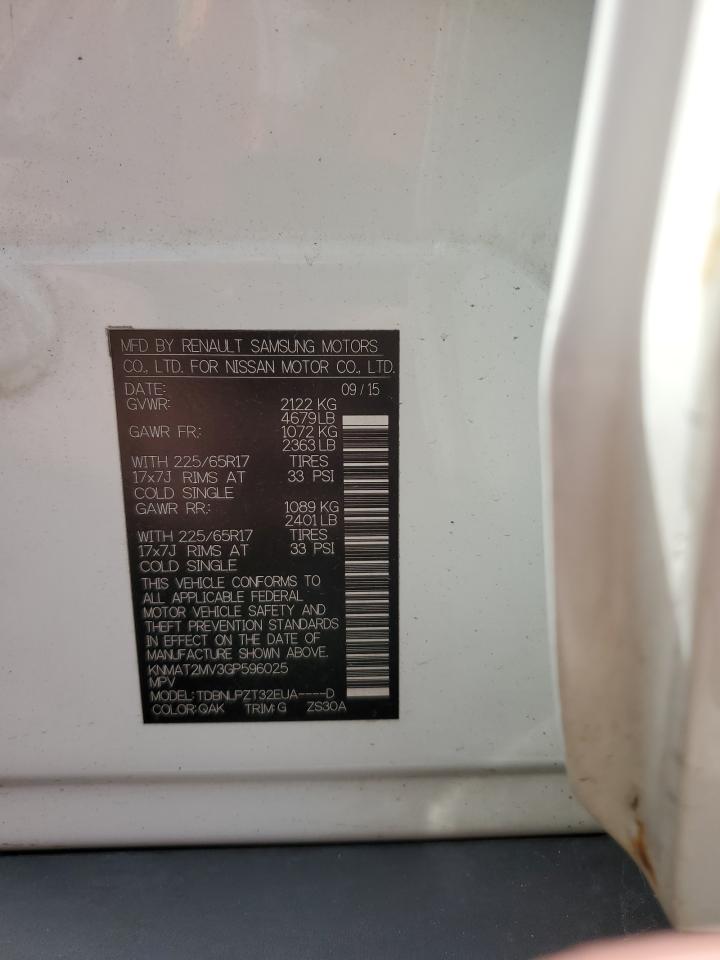 2016 NISSAN ROGUE - KNMAT2MV3GP596025, колір - Білий, 2.5, Бензин, Повний привід із США