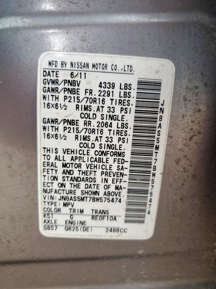 2011 NISSAN ROGUE - JN8AS5MT7BW575474, колір - Сірий, 2.5, Бензин, із США