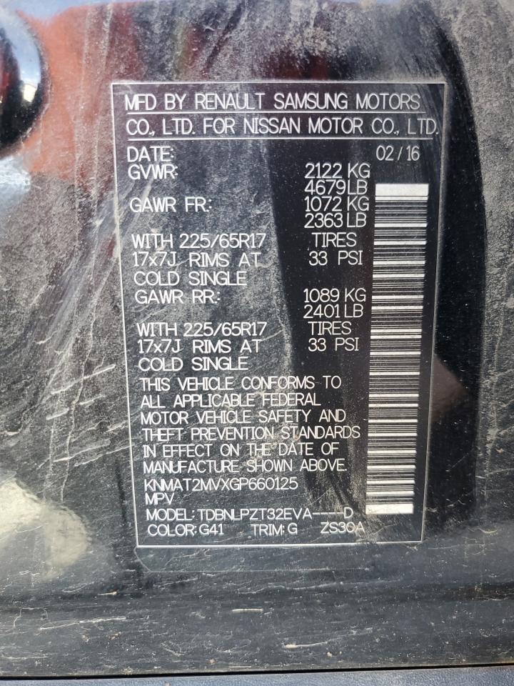 2016 NISSAN ROGUE - KNMAT2MVXGP660125, колір - Чорний, 2.5, Бензин, Повний привід із США