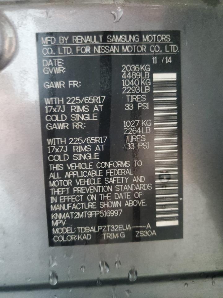 2015 NISSAN ROGUE - KNMAT2MT9FP516997, колір - Сірий, 2.5, Бензин, із США