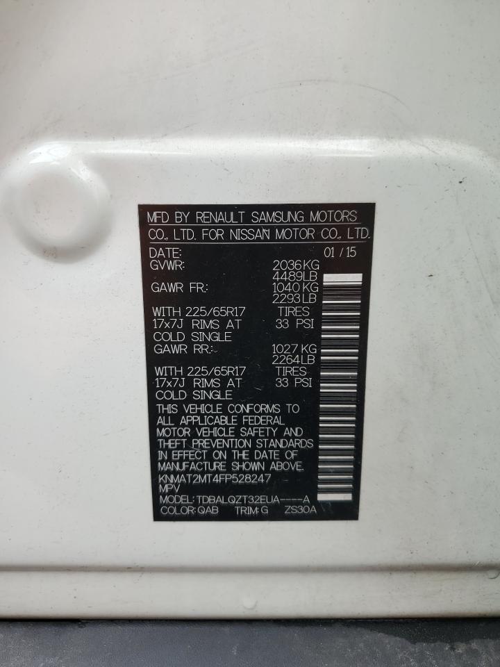 2015 NISSAN ROGUE - KNMAT2MT4FP528247, колір - Білий, 2.5, Бензин, із США