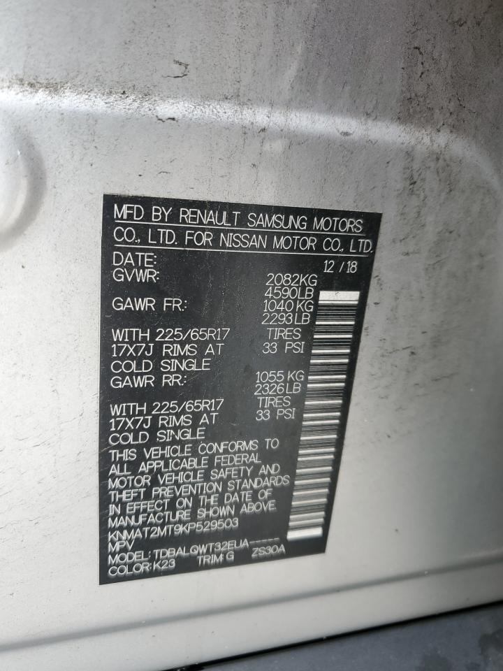 2019 NISSAN ROGUE - KNMAT2MT9KP529503, колір - Срібний, 2.5, Бензин, із США