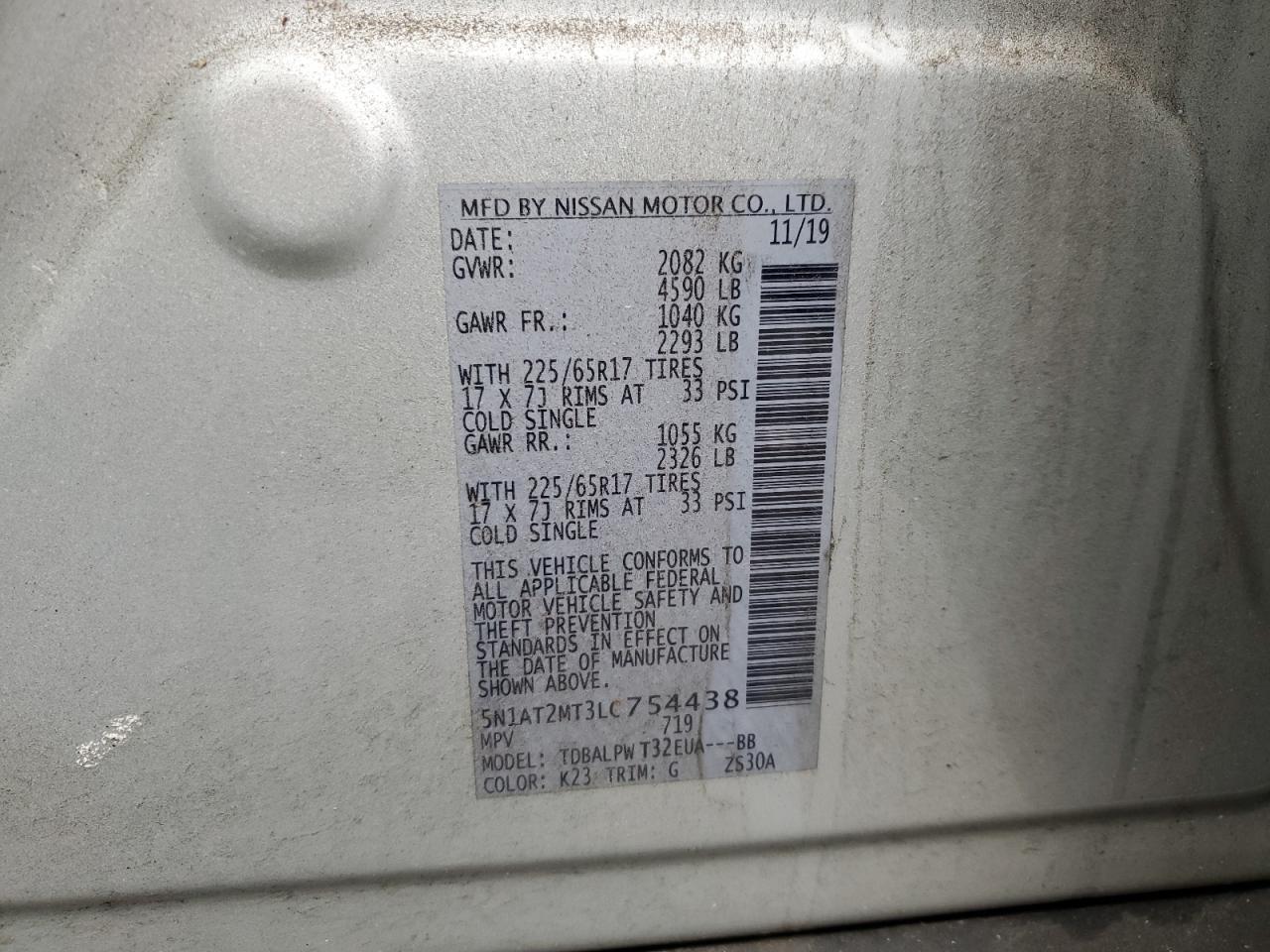 2020 NISSAN ROGUE - 5N1AT2MT3LC754438, колір - Срібний, 2.5, Бензин, із США