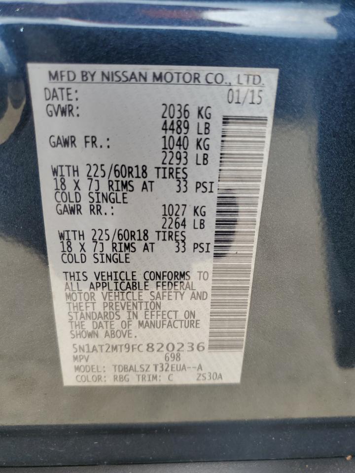 2015 NISSAN ROGUE - 5N1AT2MT9FC820236, колір - Синій, 2.5, Бензин, із США