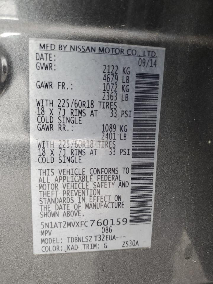 2015 NISSAN ROGUE - 5N1AT2MVXFC760159, колір - Сірий, 2.5, Бензин, Повний привід із США