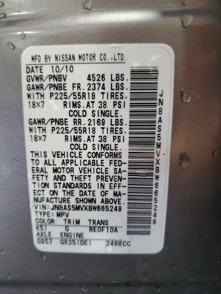 2011 NISSAN ROGUE - JN8AS5MVXBW665249, колір - Срібний, 2.5, Бензин, Повний привід із США