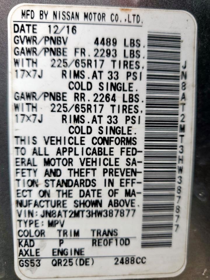 2017 NISSAN ROGUE - JN8AT2MT3HW387877, колір - Сірий, 2.5, Бензин, із США