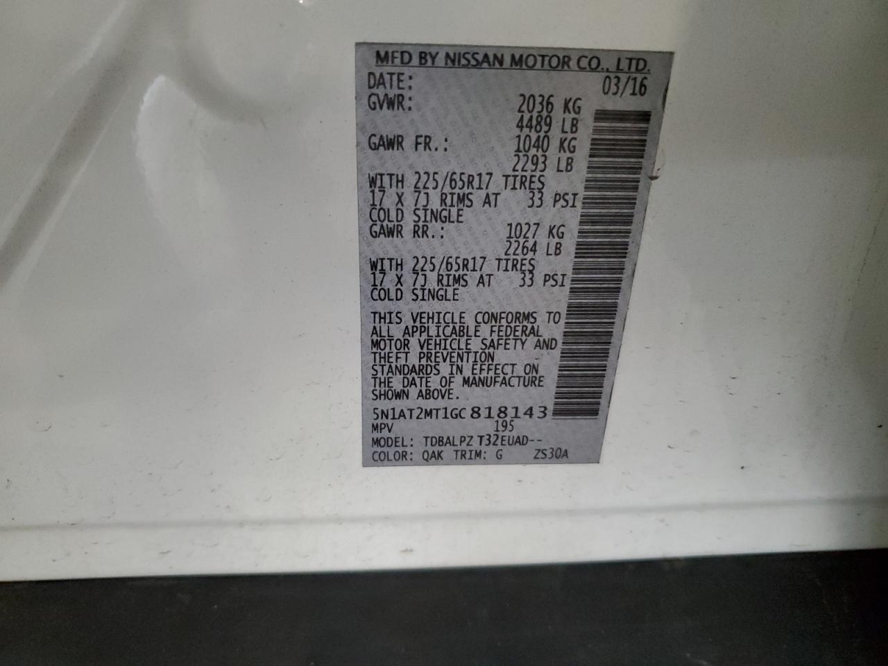 2016 NISSAN ROGUE - 5N1AT2MT1GC818143, колір - Білий, 2.5, Бензин, із США