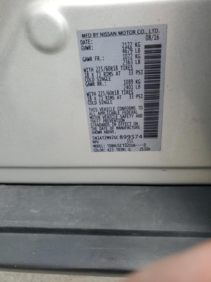 2016 NISSAN ROGUE - 5N1AT2MV2GC899574, колір - Срібний, 2.5, Бензин, Повний привід із США