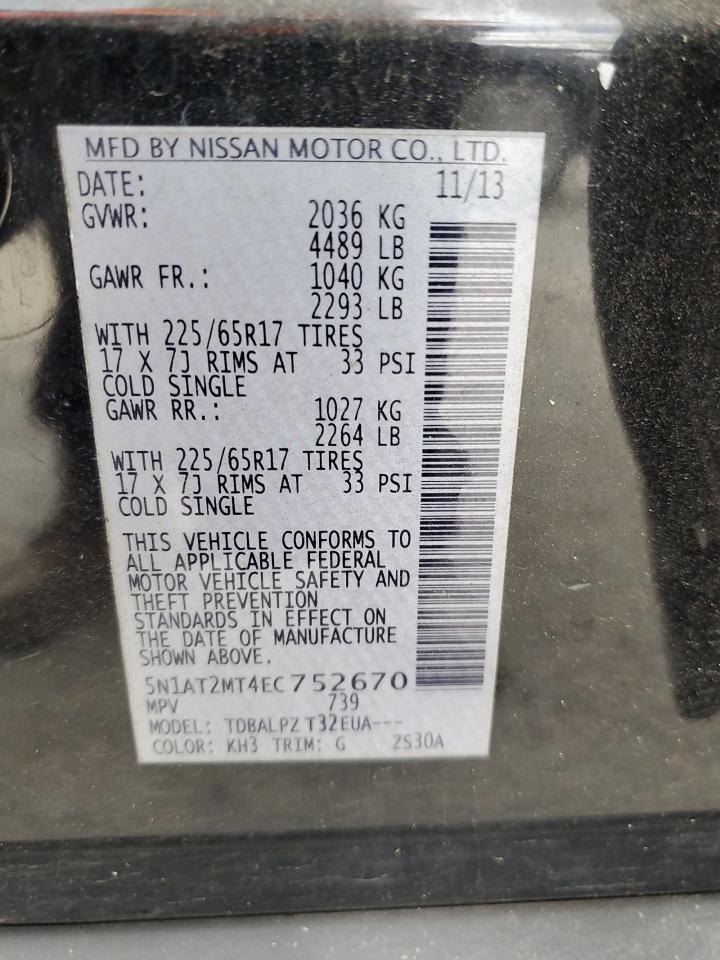 2014 NISSAN ROGUE - 5N1AT2MT4EC752670, колір - Чорний, 2.5, Бензин, із США
