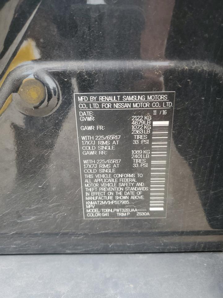 2017 NISSAN ROGUE - KNMAT2MV1HP517985, колір - Чорний, 2.5, Бензин, Повний привід із США