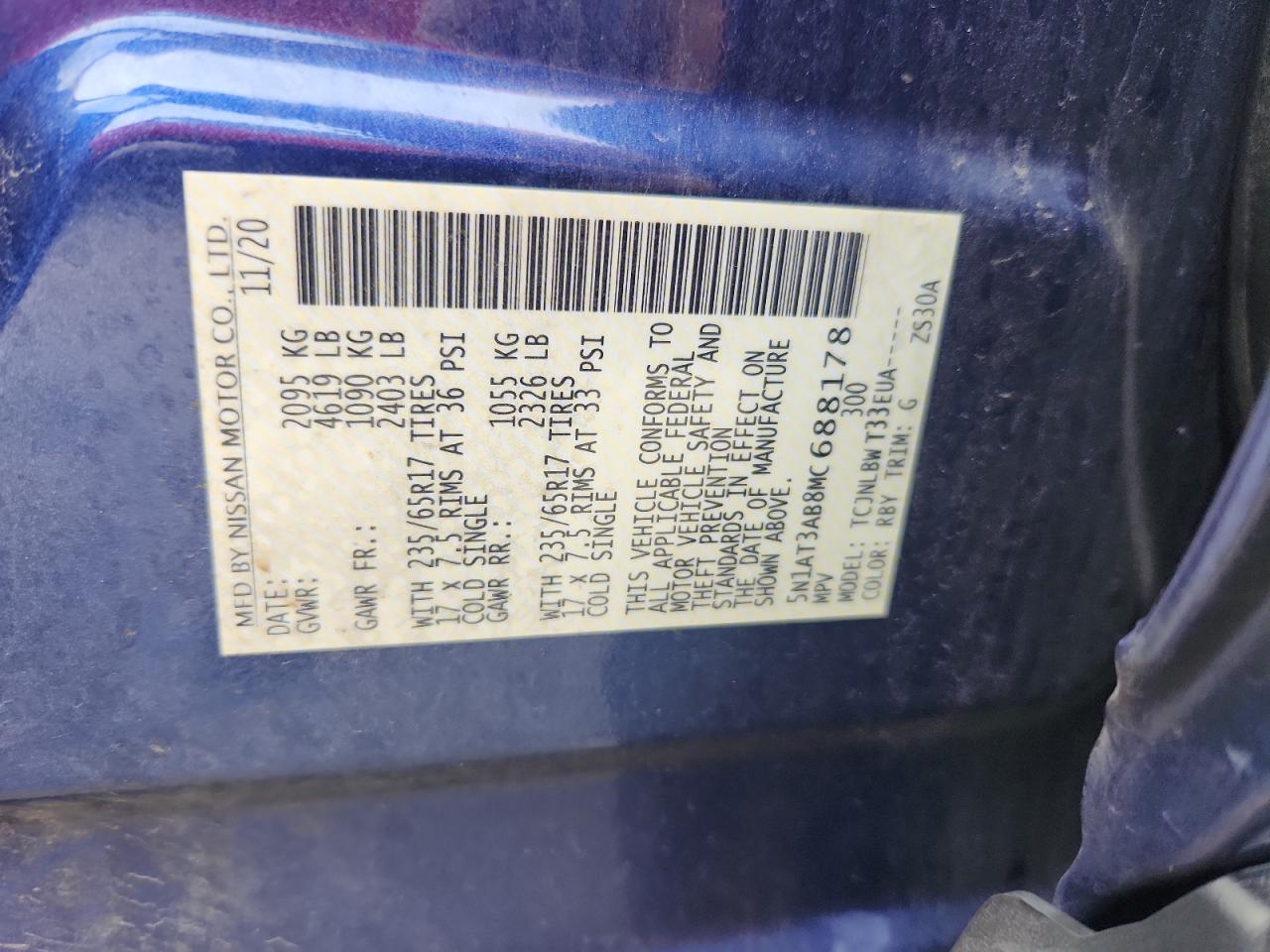 2021 NISSAN ROGUE - 5N1AT3AB8MC688178, колір - Синій, 2.5, Бензин, Повний привід із США