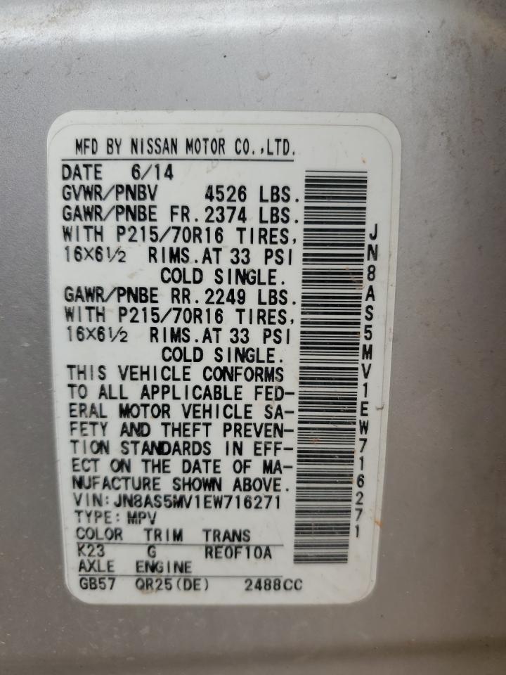 Колір СрібнийЦиліндри 4Привід Повний привідVIN JN8AS5MV1EW716271Стан Заводиться та їде (перевірено)Ушкодження Передня або задня
