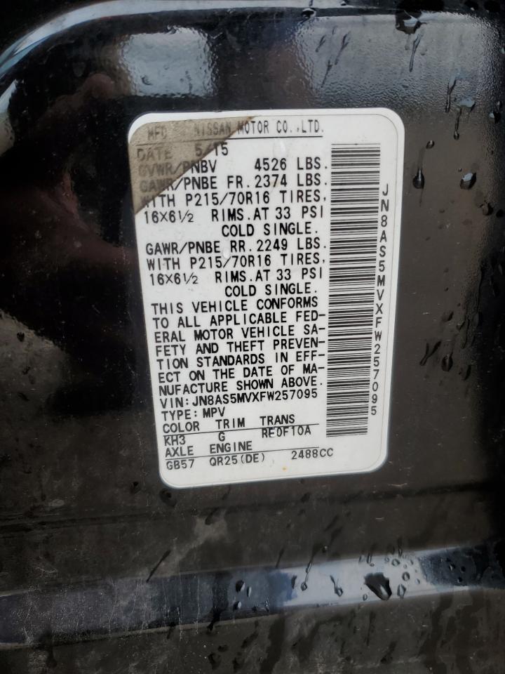 2015 NISSAN ROGUE - JN8AS5MVXFW257095, колір - Чорний, 2.5, Бензин, Повний привід із США
