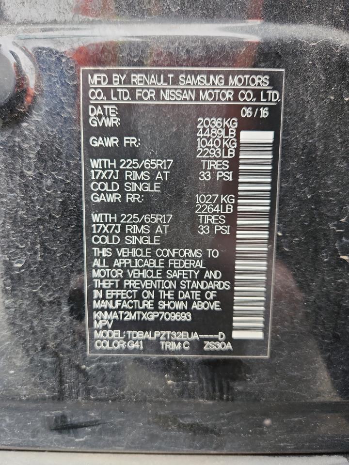 2016 NISSAN ROGUE - KNMAT2MTXGP709693, колір - Чорний, 2.5, Бензин, із США